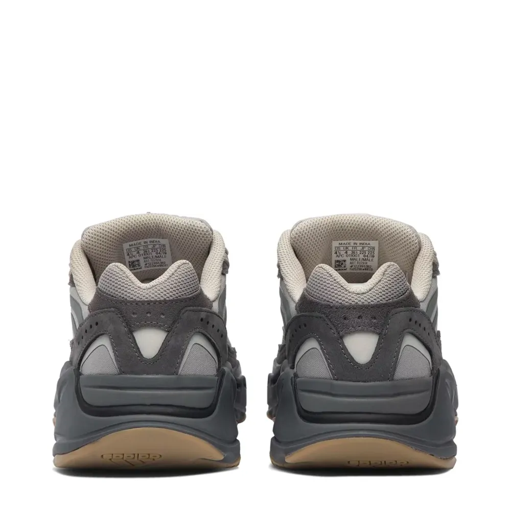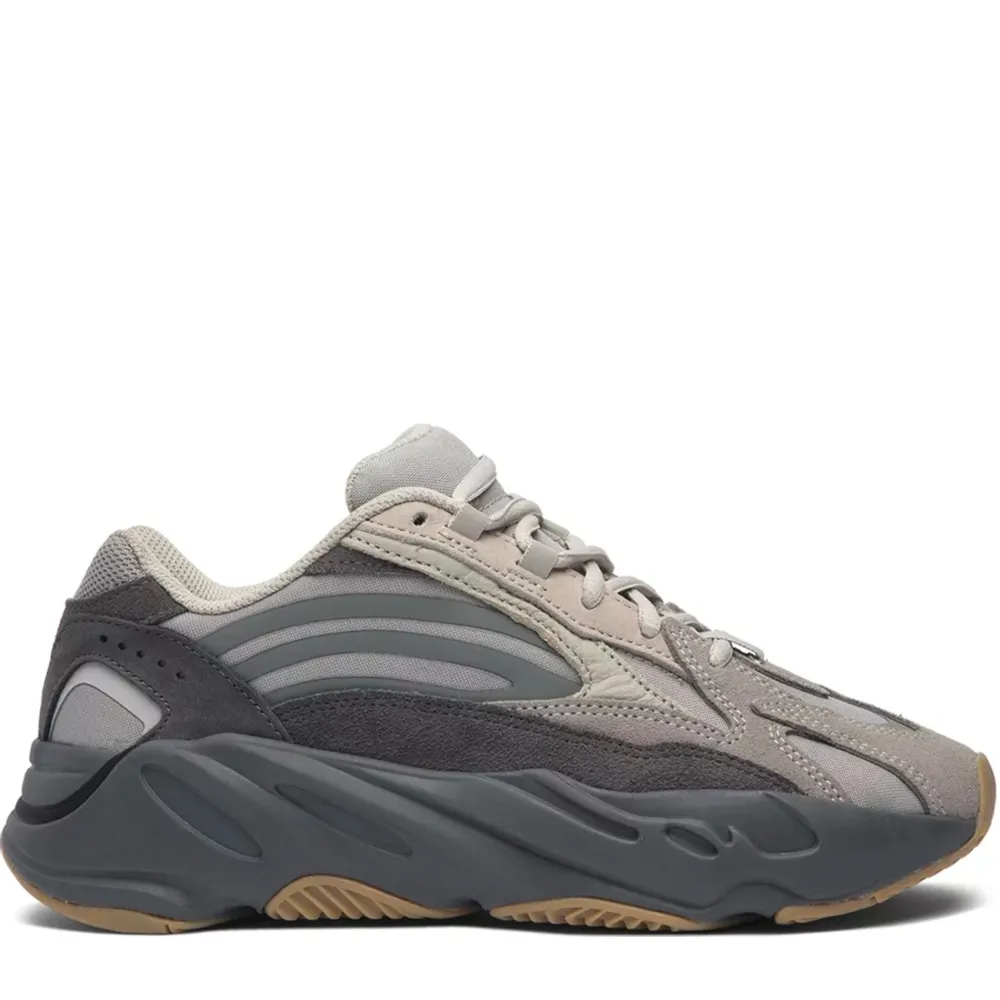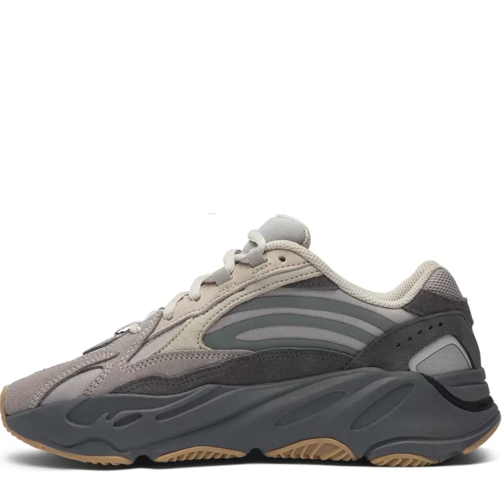 The Yeezy Boost 700 V2 is the striking follow up to the Yeezy 700 which originally debuted at Kanye West’s 2017 Yeezy Season 5 show. The V2 is more aerodynamic in appearance, with sleek, reflective overlays that draw the eye in. This rendition, the Yeezy Boost 700 V2 ‘Tephra’ sneaker, features a mesh and suede upper with subdued natural tones, culminating in deeper hues on the midsole. This version reprises the 700’s chunky sole, concealing full-length adidas Boost cushioning, underscored by gum-rubber tread.