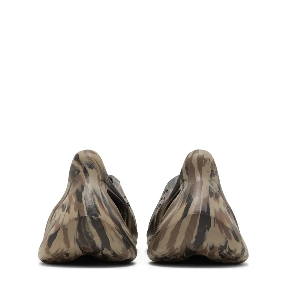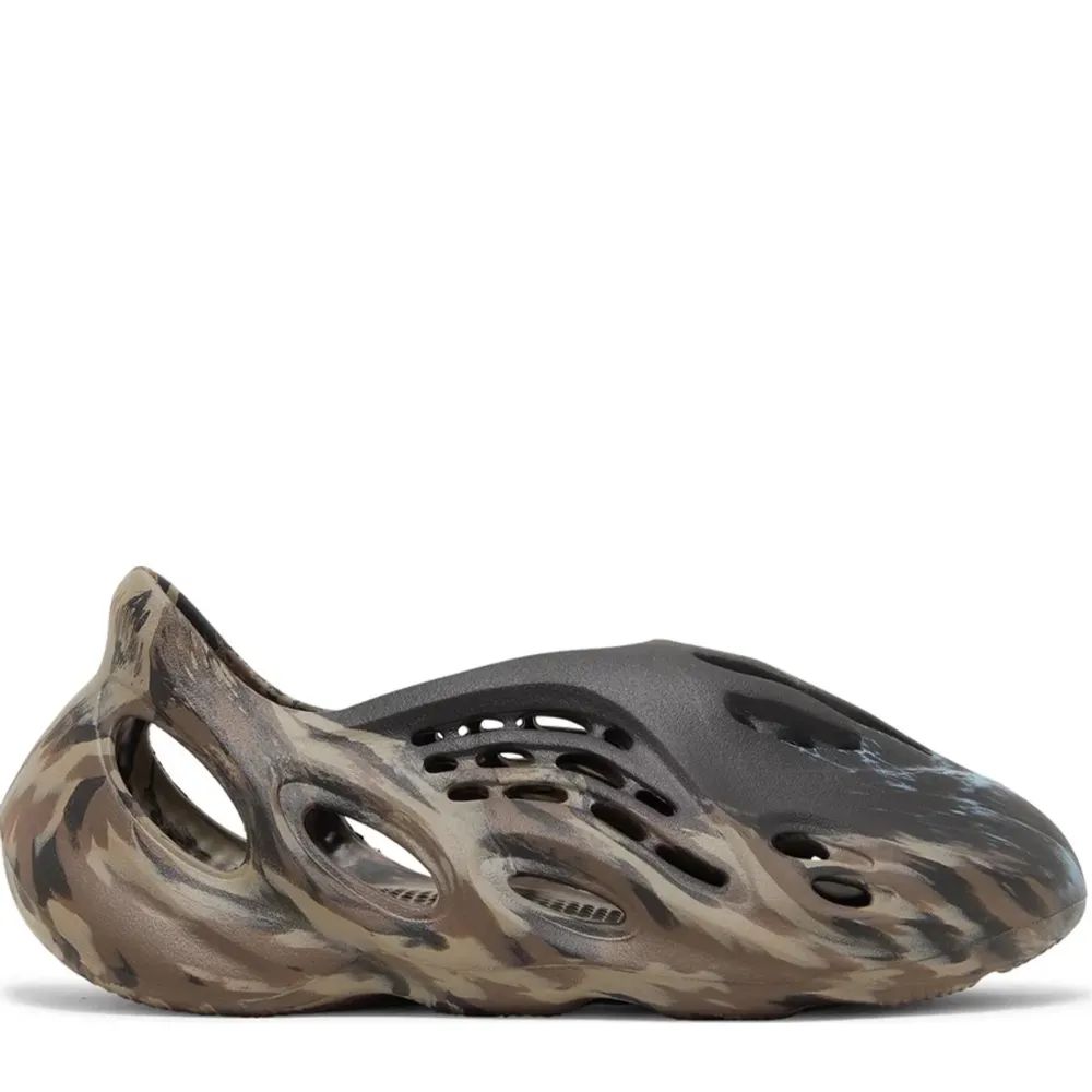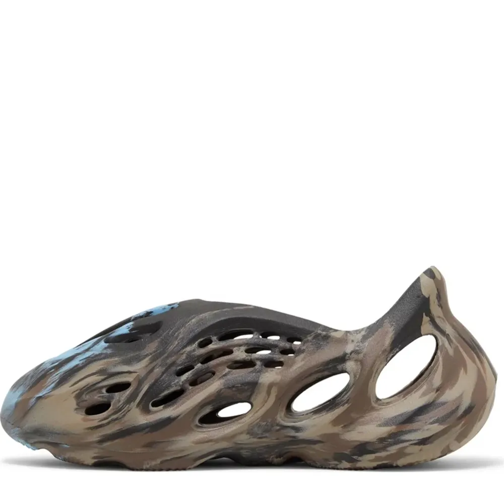 The adidas Yeezy Foam Runner ‘MX Cinder’ enlivens the slip-on silhouette with cooling splashes of color. Built with injected EVA foam, the one-piece upper is rendered in an earthy mix of brown and tan shades. Atop the vamp, a solid black finish is contrasted by unexpected bursts of aqua blue. A series of strategically mapped vents provide enhanced breathability, while the soft top layer of the footbed delivers step-in comfort. Underfoot, the contoured outsole features a wavy tread for optimal grip.