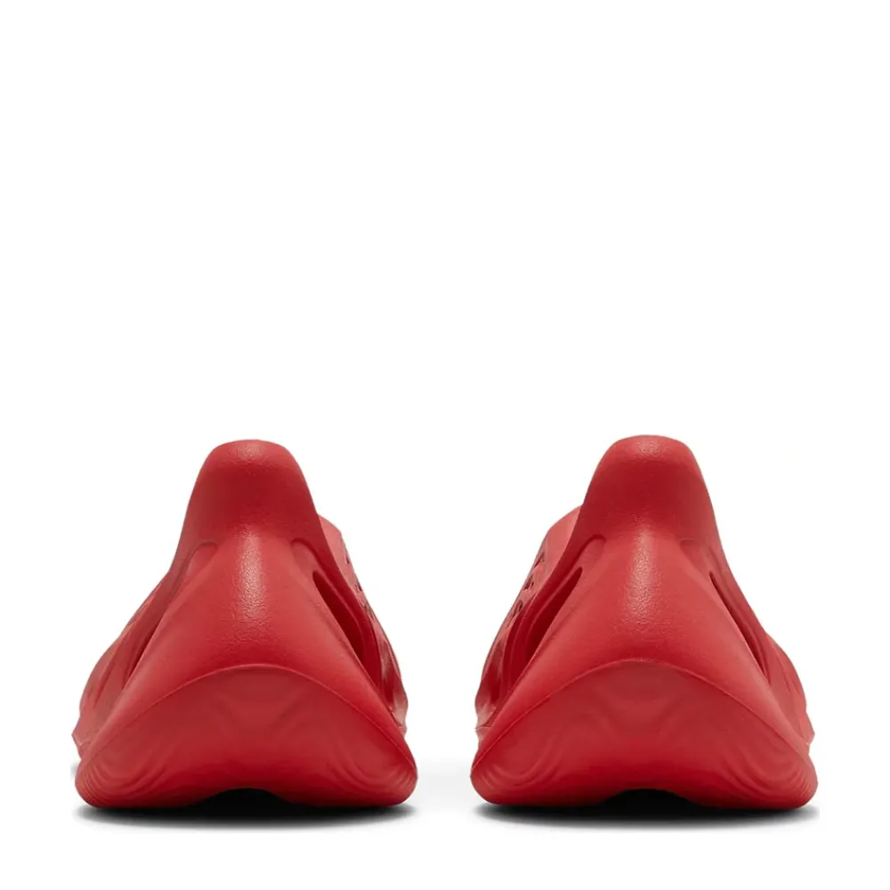 The adidas Yeezy Foam RNNR Vermillion features an all-red one piece EVA foam construction with oval cut-outs to provide ventilation. At the base, a cushioned footbed offers support and stability.