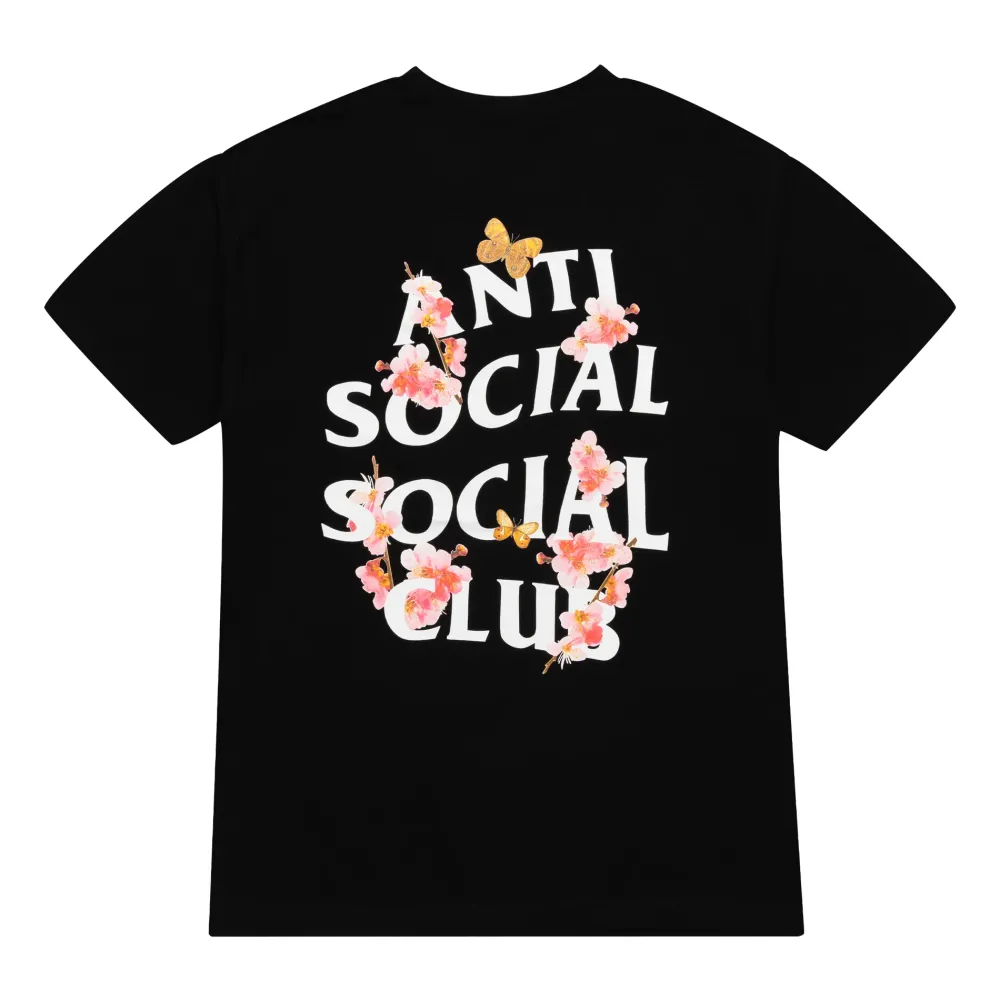 This Anti Social Social Club T-shirt was originally released as a part of the brand’s SS20 release in March 2020. The t-shirt features a plain Anti Social Social Logo on the front left chest of the tee and a large print of the brand’s logo covered in flowers and butterflies across the back of the garment.