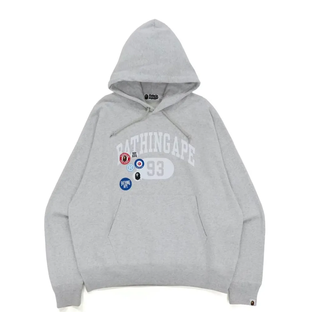 Bape Badge Motif Loose Fit Pullover Hoodie Gray|Plus Fashion
