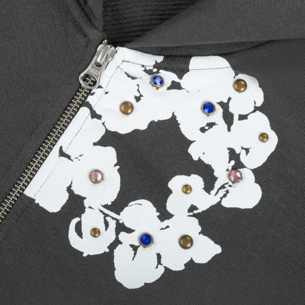 The Cotton Wreath Sweatshirt s made from 100% premium cotton material and features a hood and front pocket. The sweatshirt features a ribbed crew neckline, cuff, and hem, which provides a snug fit and extra support and comfort. The sleeves of the sweatshirt are relaxed, allowing a range of motion for the wearer. There is a comfortable fleece lining inside the sweatshirt which provides extra insulation and warmth, making it perfect for colder weather conditions.