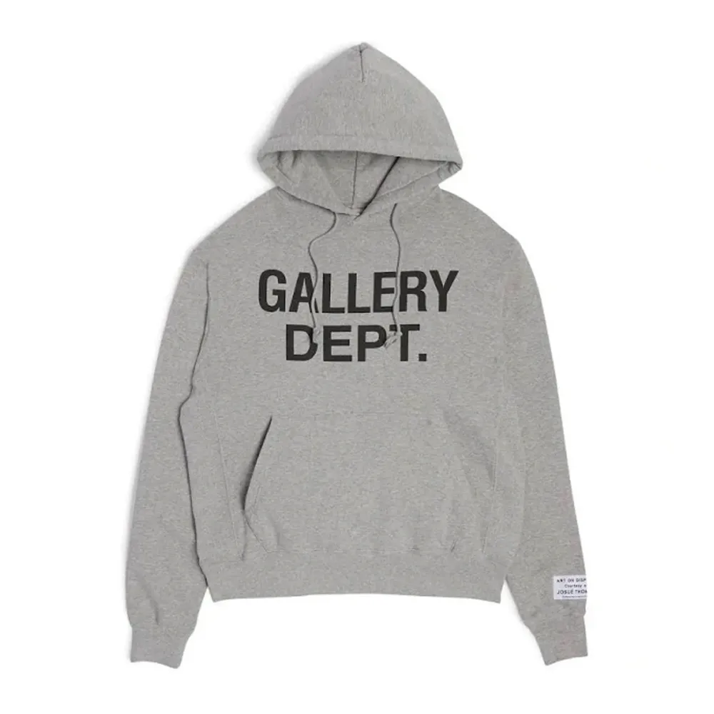 Loopback cotton-jersey hoodie in heather grey adorned with our GALLERY DEPT. English logotype in the center of the garment. Each hoodie has been appliquéd with our ‘art on display’ patch by the cuff.