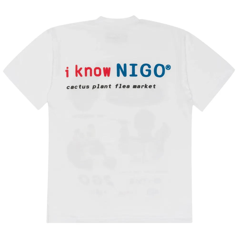 The Japanese fashion designer NIGO released a passion project music album that was characteristically stylish and star-studded, featuring contributions from Pharrell, Kanye West, Tyler the Creator, and the late Pop Smoke. NIGO released a merch collection alongside the album featuring a variety of t-shirts with the slogan “I KNOW NIGO” across the collection and calling Cactus Plant Flea Market to collaborate on this t-shirt.