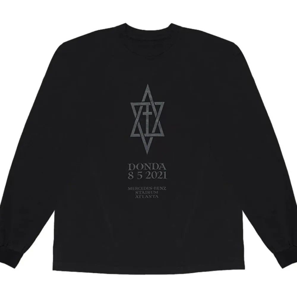 The black Kanye West Donda Listening L/S T-shirt was released in early August of 2021 as a part of the merch offering for the artist’s recent album, Donda.