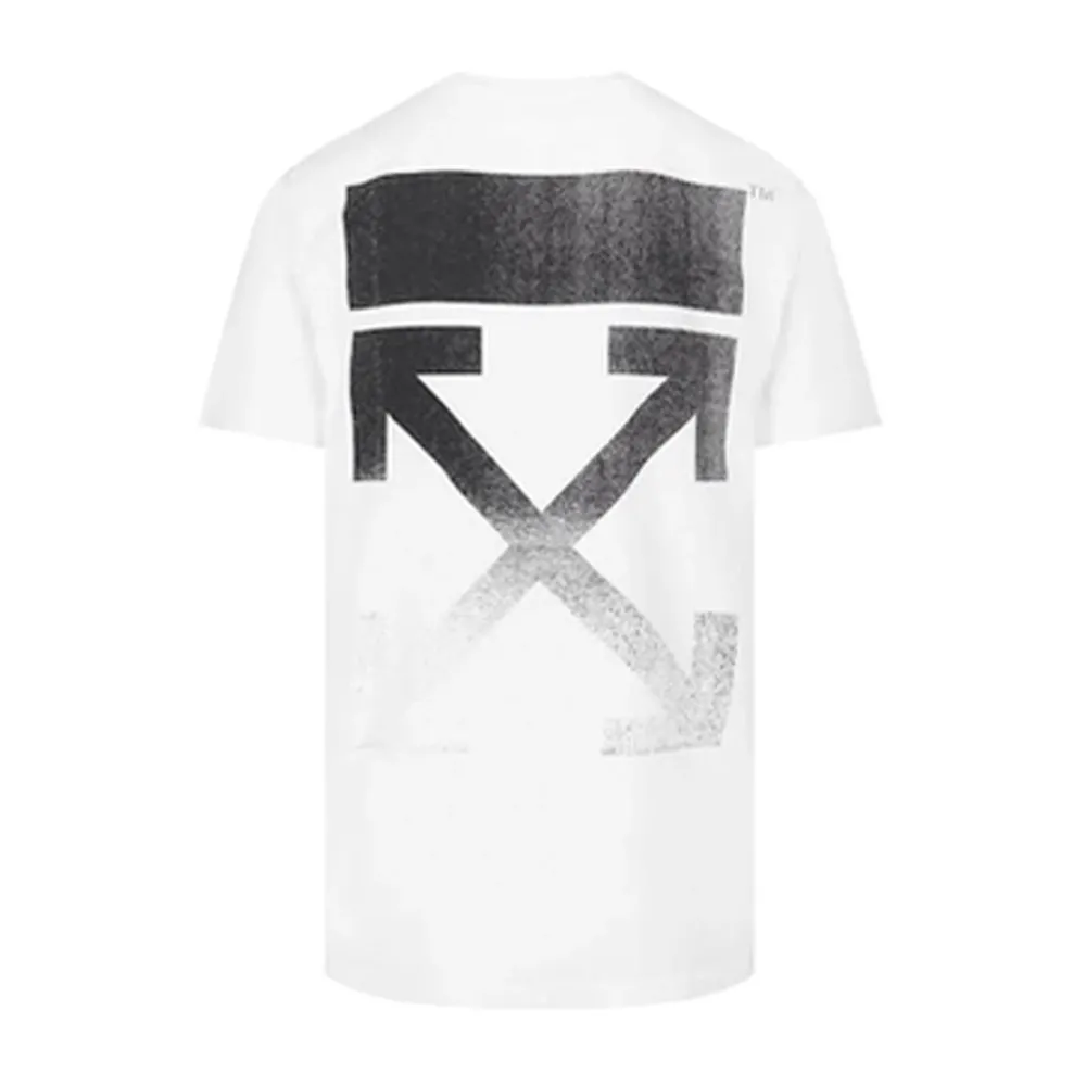 Short sleeves oversized T-Shirt in white featuring Off logo on the front. Degraded arrows printed on the back in black. Crewneck collar.