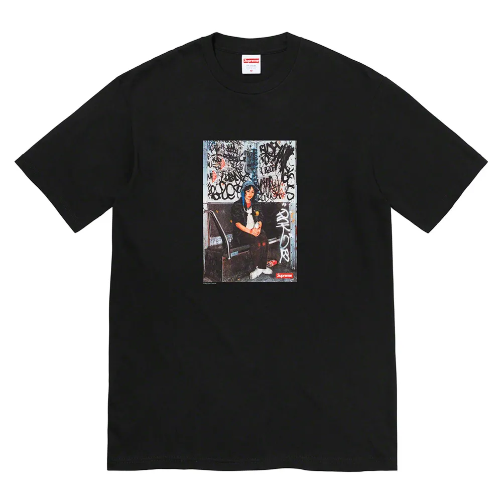Supreme released this Supreme Lady Pink T-shirt in black as a part of their Fall/Winter 2021 Week 18 drop which featured Winter T-shirts.