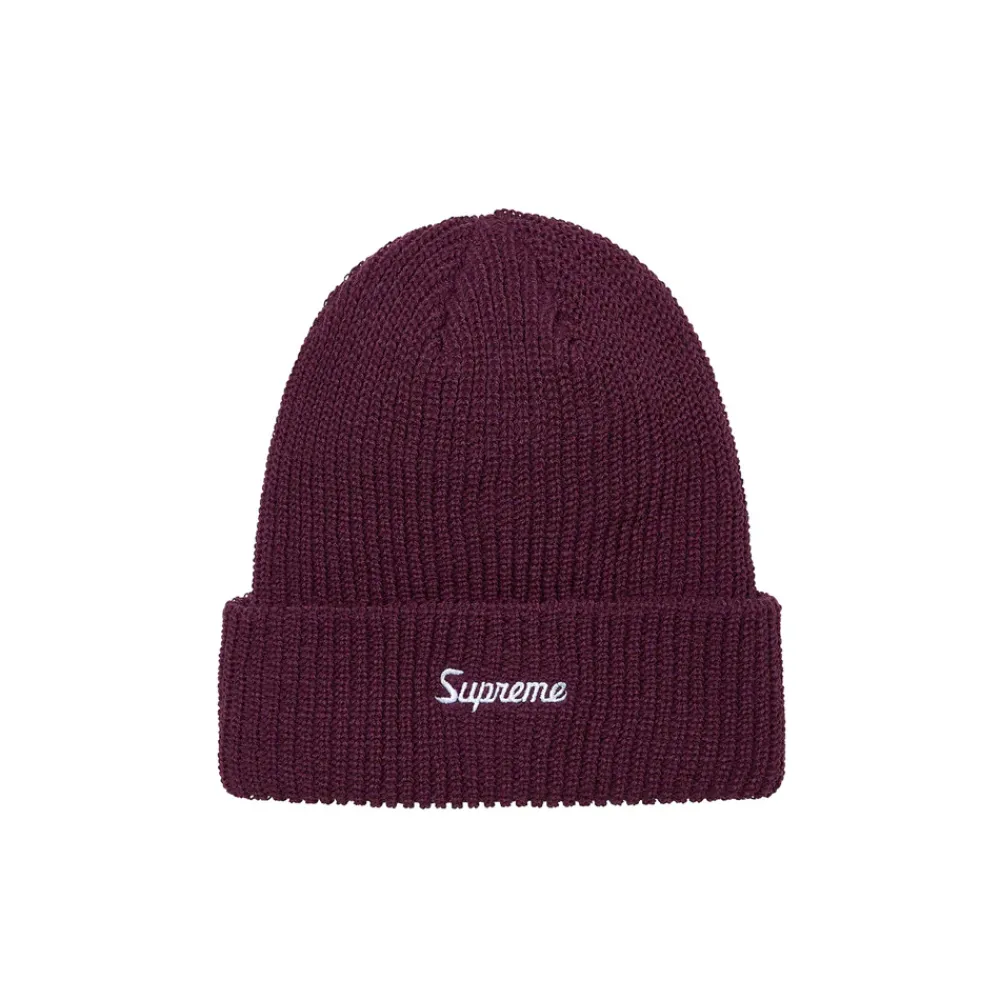 Supreme’s loose gauge beanie features a minimal design, crafted from soft cotton, enhanced with a embroidered logo on the front.