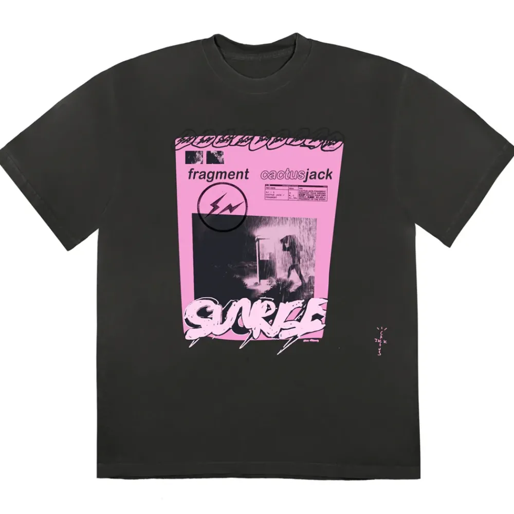This Travis Scott x Fragment T-shirt features an array of graphics as well as branding from both partners.