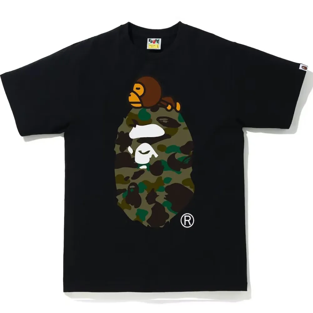 Bape 1st Camo Milo on Big Ape Tee Black/Green|Plus Fashion
