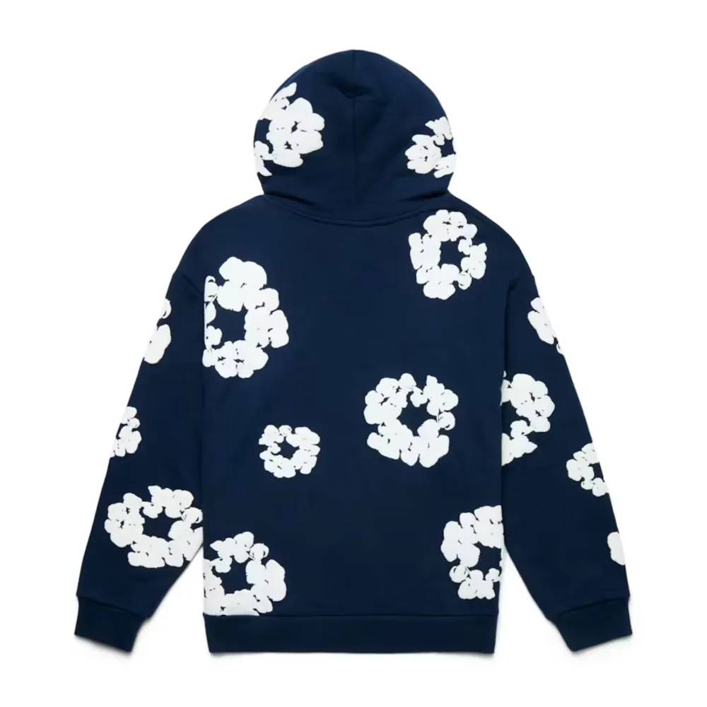 The Cotton Wreath Sweatshirt Green is made from 100% premium cotton material and features a hood and front pocket. The sweatshirt features a ribbed crew neckline, cuff, and hem, which provides a snug fit and extra support and comfort. The sleeves of the sweatshirt are relaxed, allowing a range of motion for the wearer. There is a comfortable fleece lining inside the sweatshirt which provides extra insulation and warmth, making it perfect for colder weather conditions.