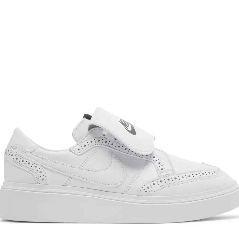 The G-Dragon x Nike Kwondo 1 ‘Triple White’ introduces a new silhouette conceived in partnership with the renowned South Korean rapper. Named after the Korean martial art of taekwondo, the hybrid silhouette features a monochrome white leather upper defined by various design influences, including the Janoski’s classic shape, brogue detailing from traditional golf shoes, and overlapping tongues from ‘90s football boots. The latter features a debossed Nike logo on the right shoe and Peaceminusone branding on the left, while each heel tab features G-Dragon’s embroidered daisy. The sneaker sits atop a matching white sole unit that mimics the look of formal footwear.